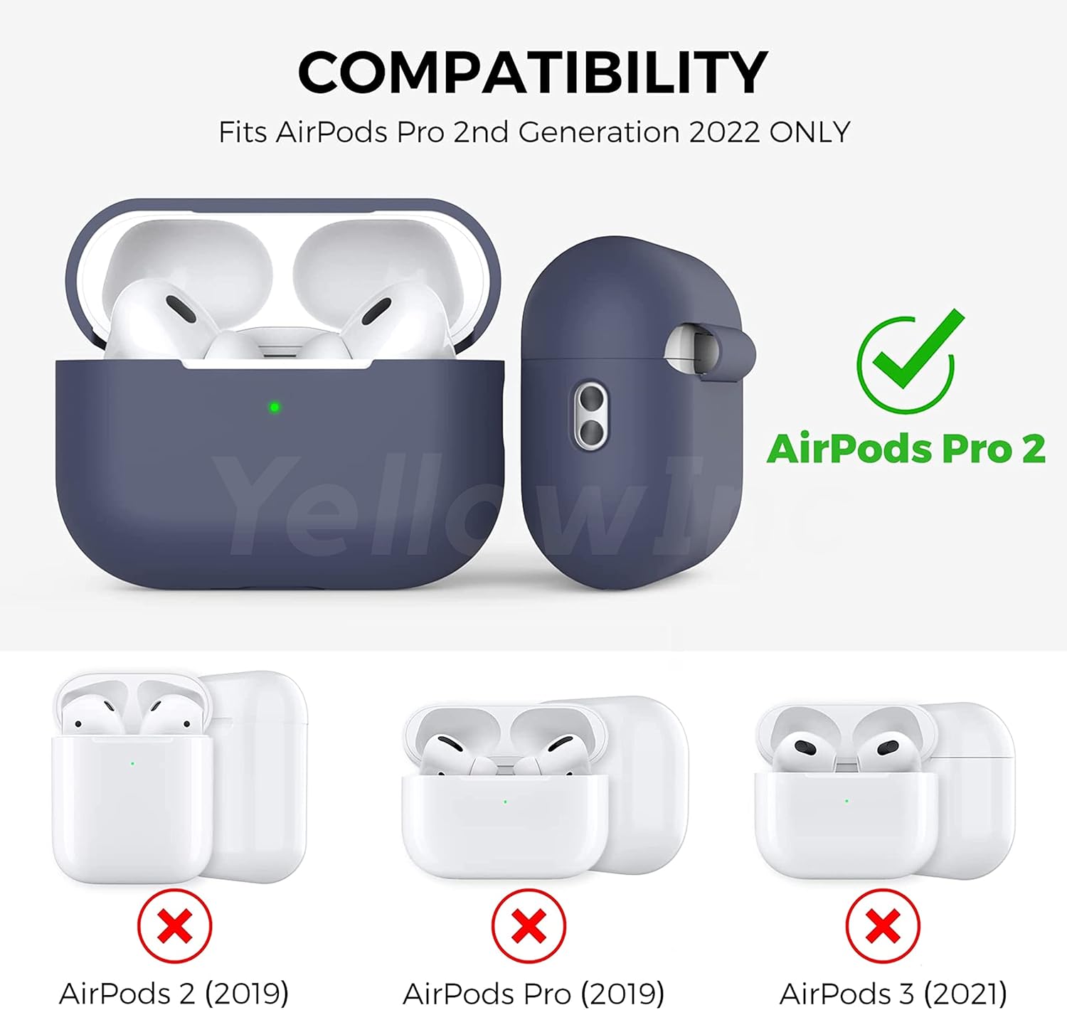 COMPATIBLE WITH APPLE AIRPODS PRO 2 GEN PREMIUM SILICONE MATERIAL Perfect with Charging – The precise cutouts allows you to charge your earphones without removing the cover. Front LED keeps your AirPods Pro2 case’s status light visible. Never Get Lost – Each case is equipped with a metal carabiner clip, convenient to attach the pouches to a handbag or backpack.