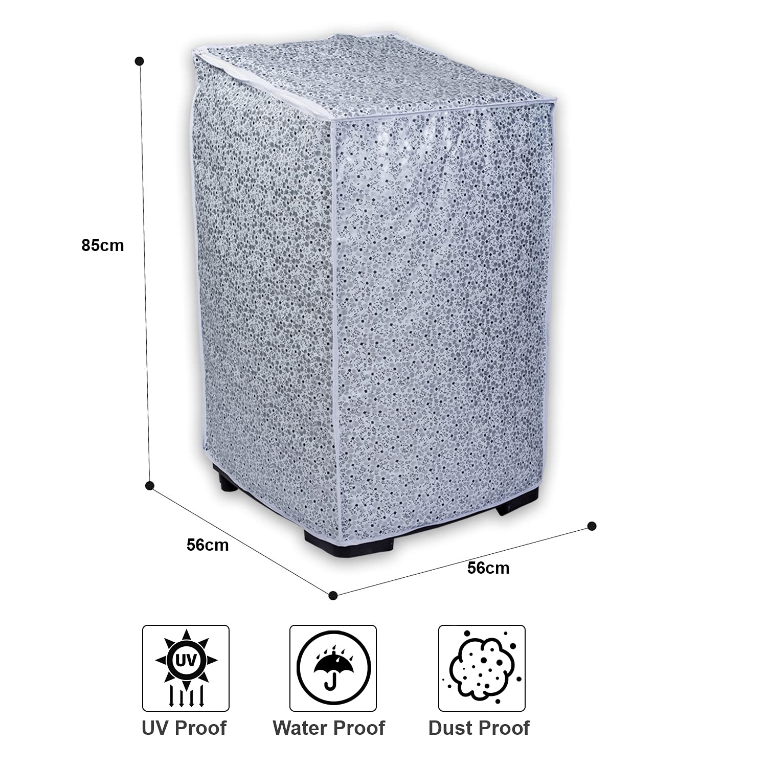 Cover Suitable for LG Top Load Washing Machine for 6 kg, 6.2 kg, 6.5 kg, 7 kg. Size in cms: 56cms X 56cms X 85cms.