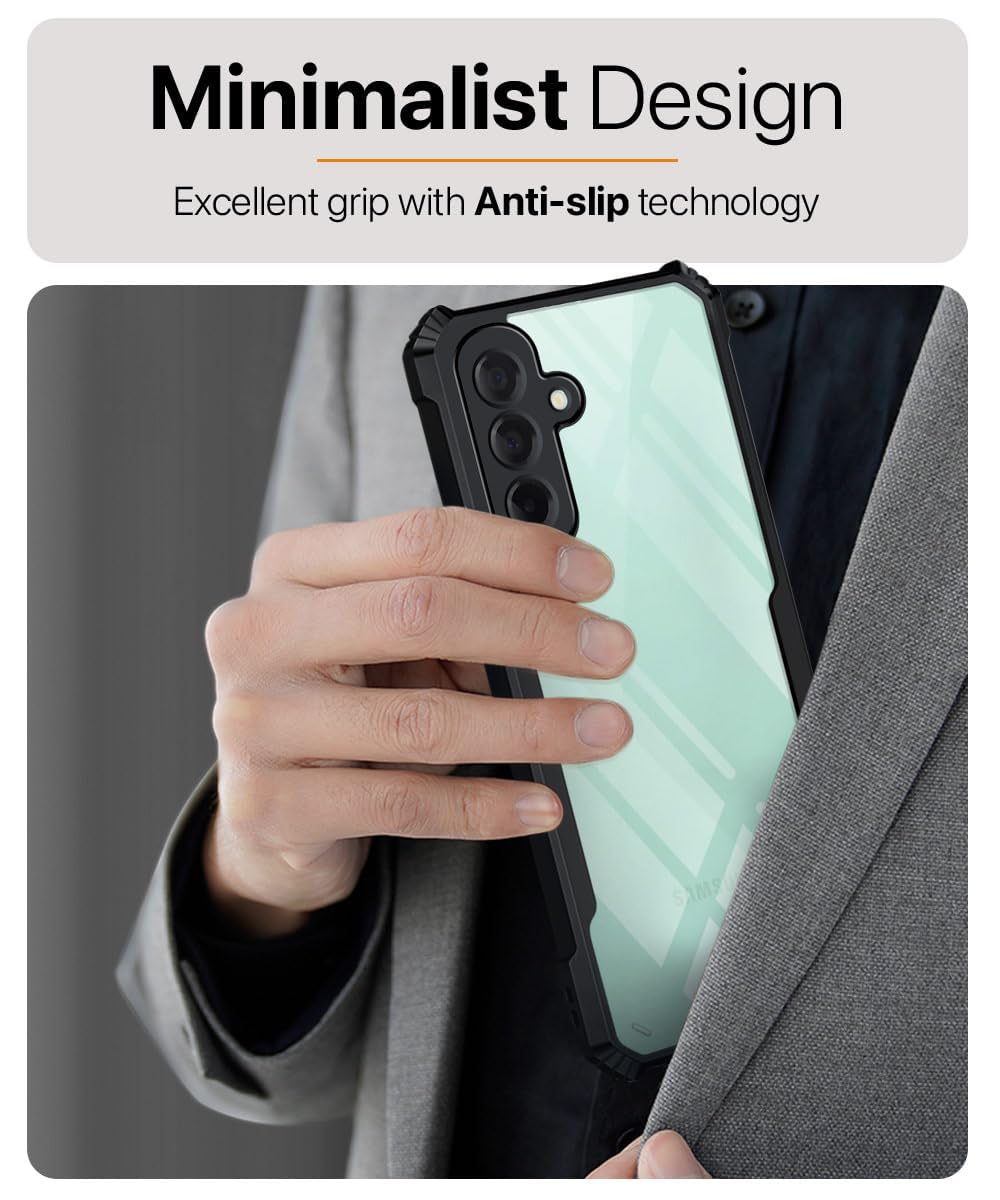 Introducing the CaseKart Ultra Hybrid back cover for Samsung Galaxy M17 | A17 5G | F17 5G – a perfect blend of protection and style. This thoughtfully designed case features a slim profile that maintains your phone’s sleek aesthetics while offering comprehensive 360-degree protection. The crystal-clear transparent design with black bumper edges showcases your device’s original look while keeping it safe. The case comes with raised edges around the camera module, ensuring your precious lenses stay protected from scratches when placed on flat surfaces. The flexible TPU construction absorbs impact from outer forces, while the reinforced corners provide additional drop protection. Its precise cutouts ensure easy access to all ports and buttons, maintaining full functionality. The slim yet sturdy design offers optimal grip without adding bulk to your device. Whether you’re looking for daily protection or style statement, this case delivers both without compromise.