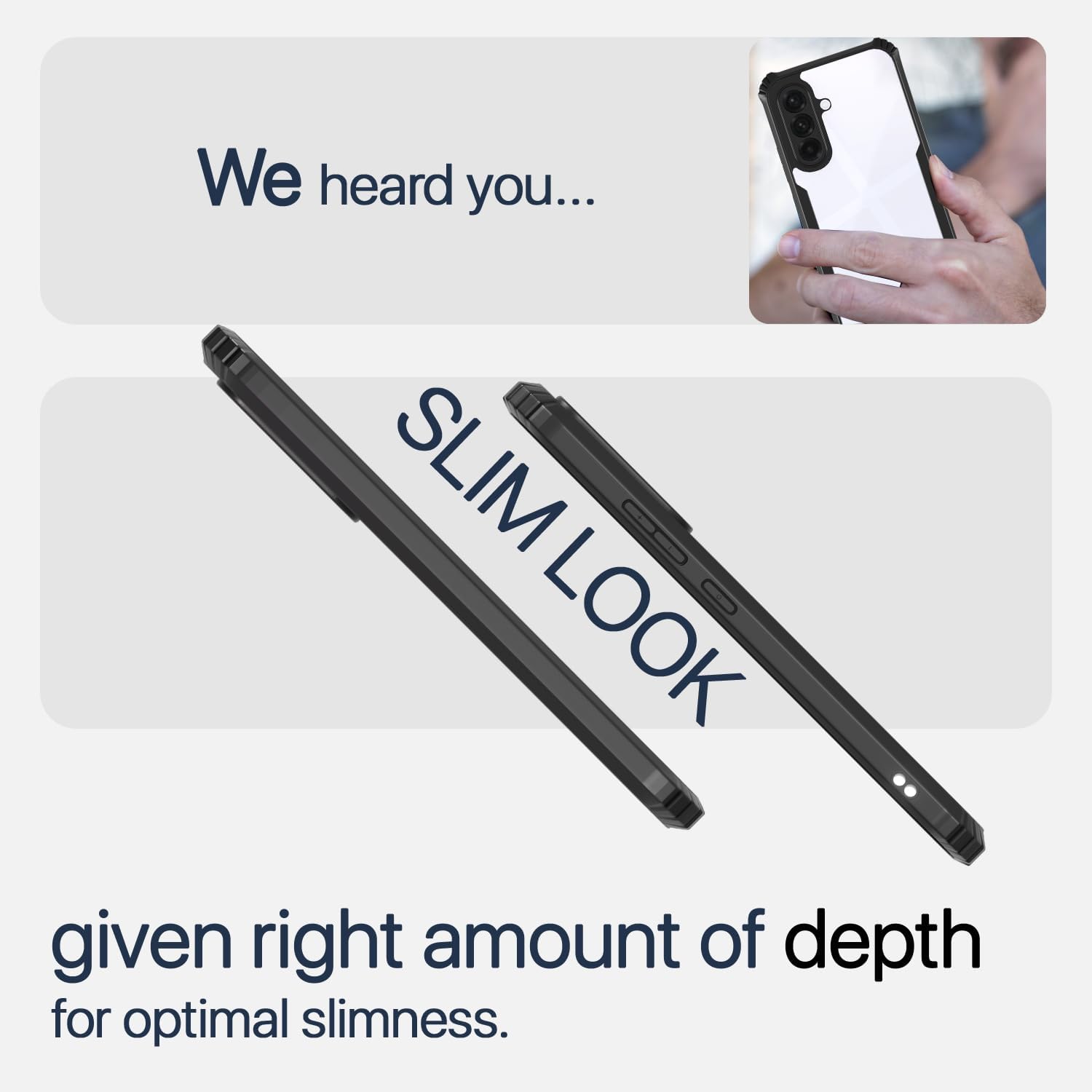 SLIM DESIGN: Ultra-hybrid transparent back case with black bumper frame offers a sleek profile while maintaining device aesthetics and functionality