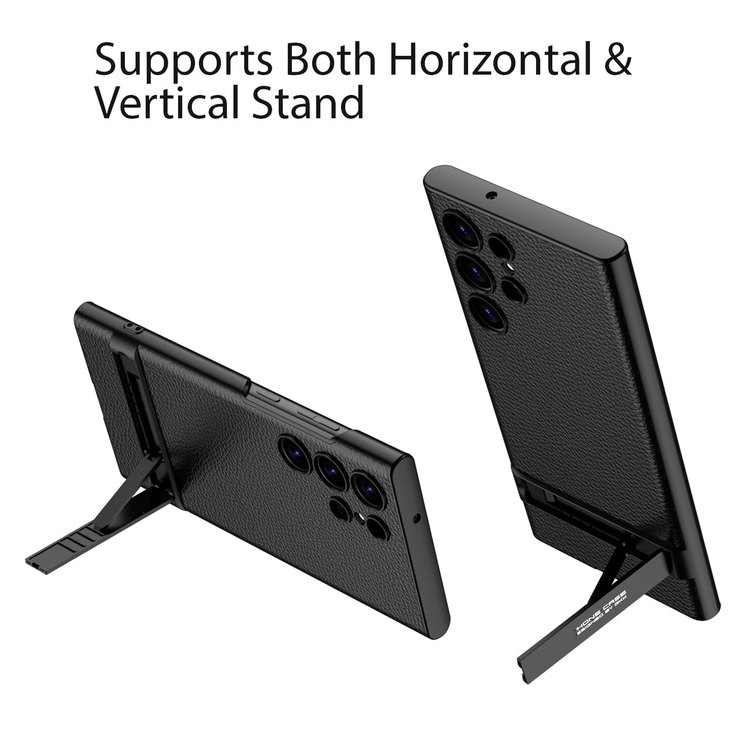 Kapa Leather Ultra Thin Back Case for Samsung Galaxy S24 Ultra Cover | with Inbuilt Stand Full Body Protection Back Cover (Black)