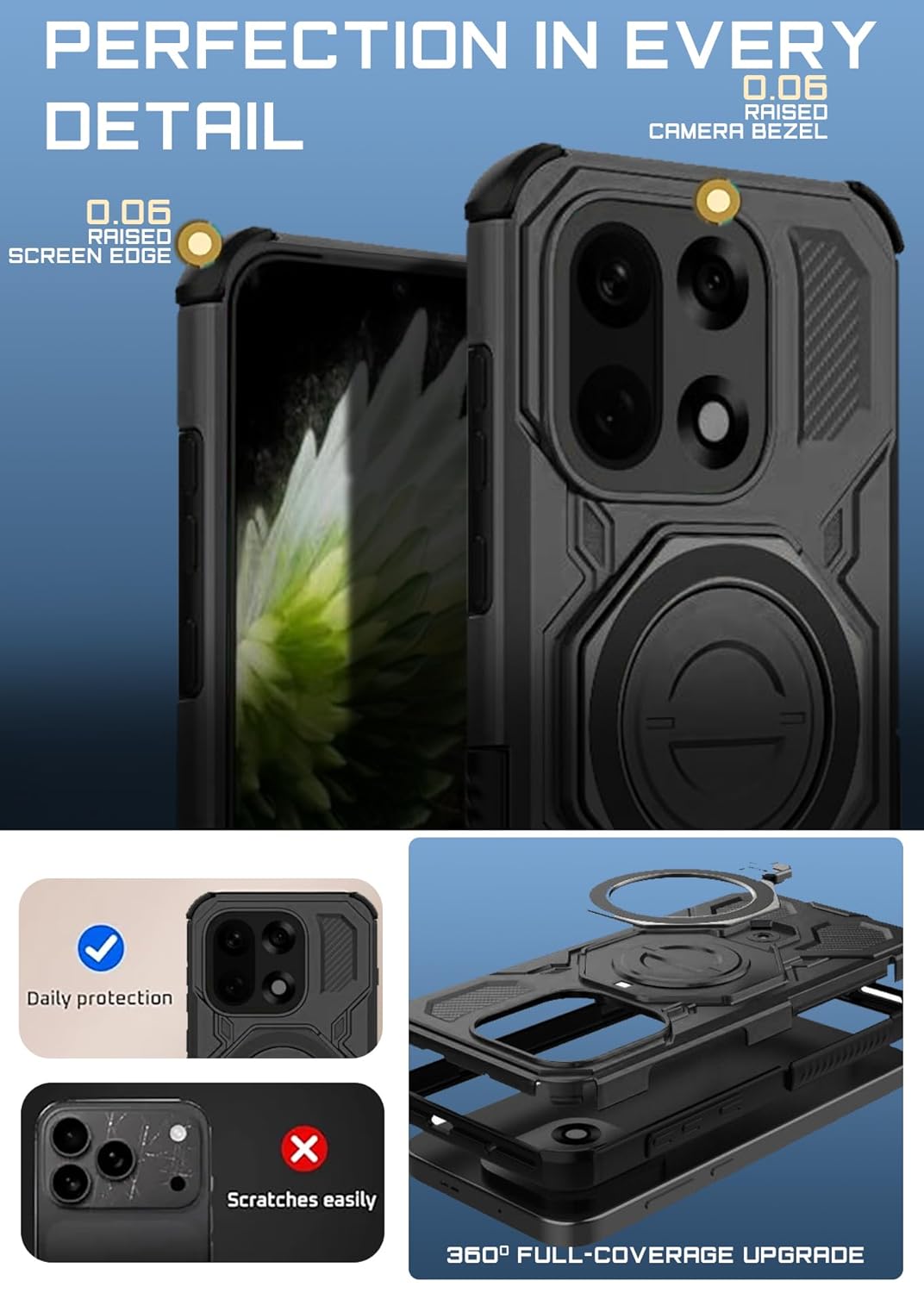 1.Comes with 360° full rotation and 180° metal flip ring kickstand that supports vertical and horizontal view