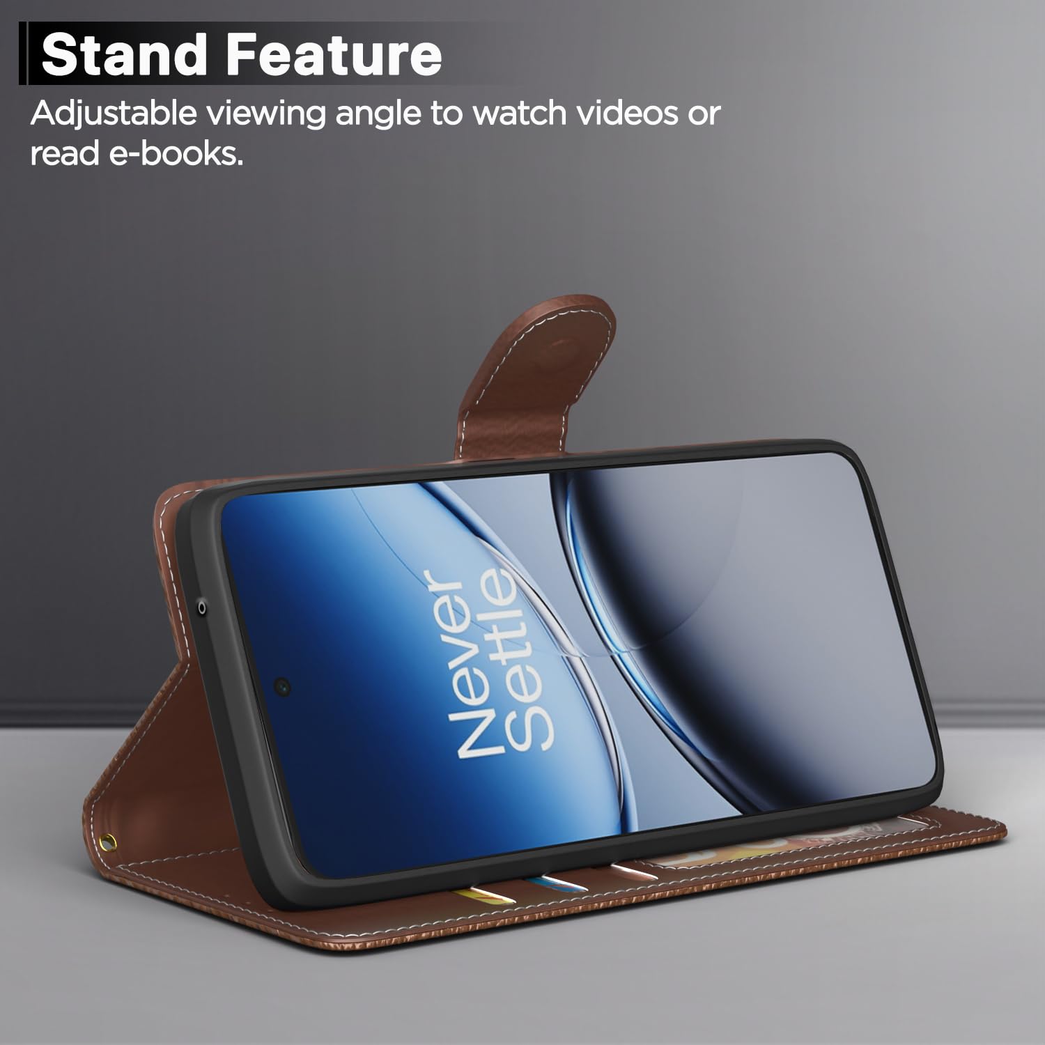 Pikkme Flip Cover for Oneplus Nord CE5 5G | Leather Finish | Wallet Stand and Shock Proof | Complete Protection Flip Case (Tan)