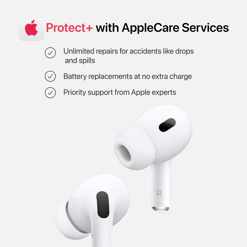 Protect+ with AppleCare Services for AirPods includes service and support from Apple, with certified repairs at Apple Stores and Apple Authorized Service Providers using genuine Apple parts, and priority access to Apple Support.