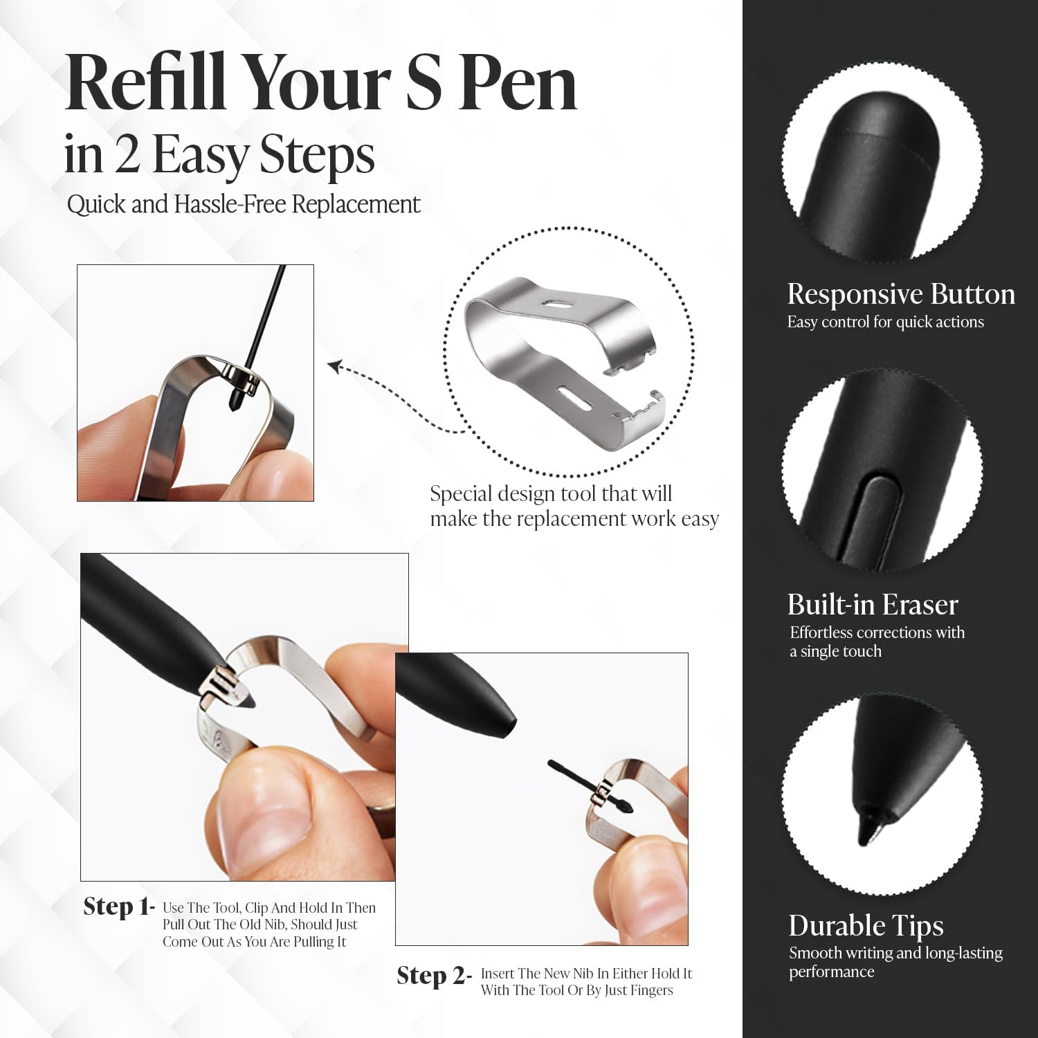 Easy Tip Replacement: When the pen tip gets worn out, use the included tweezers to change it quickly. If it’s stuck, warm the tip slightly with a hair dryer to remove it easily