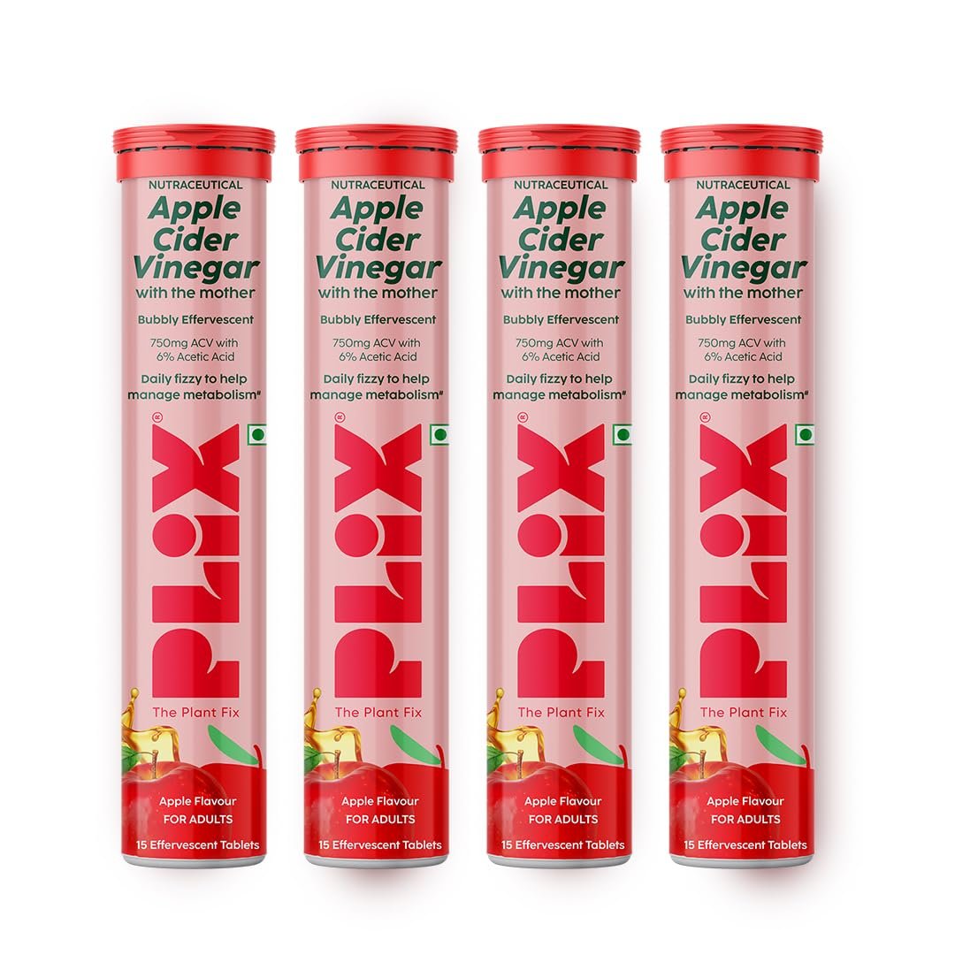 THE PLANT FIX Apple Cider Vinegar Effervescent Tablet with Mother | Supports Metabolism & Control Cravings | With 750mg ACV, Vit B6 & B12 | No Added Preservative | Pack of 4 (60 Tablets)