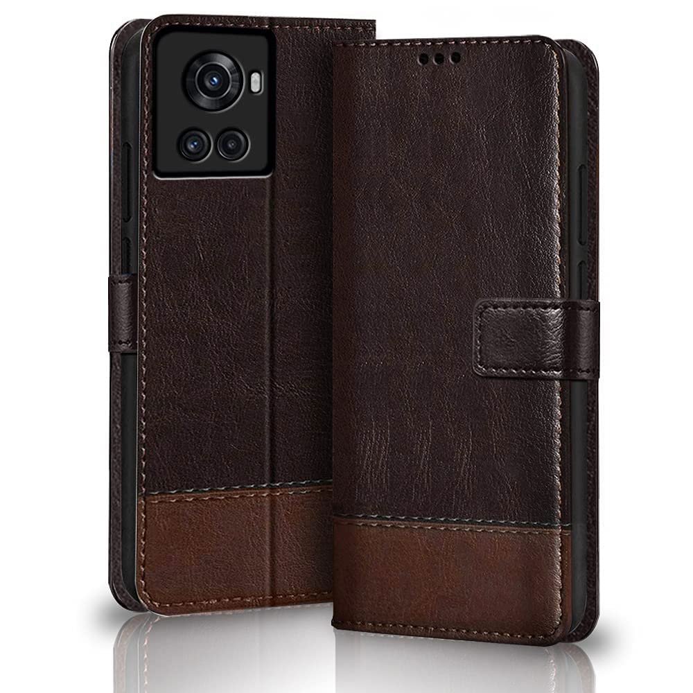 TheGiftKart Flip Back Cover for OnePlus 10R / 10R Prime 5G | Leather Finish | Inbuilt Stand & Pockets | Wallet Style Flip Back Cover for OnePlus 10R / 10R Prime 5G (Faux Leather | Coffee Brown)